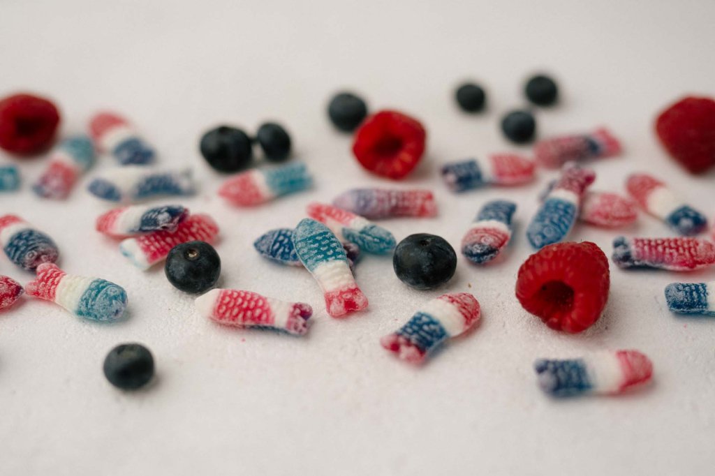 Die Sprotte in den Landesfarben Schleswig-Holsteins: Blaubeere, Vanille, Kirsche.